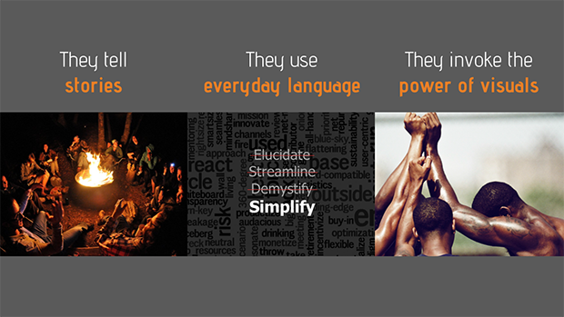 PowerPoint presentations don’t exactly have the greatest reputation…you can blame the presenter, but really, it’s text-laden or poorly designed visuals that do most of the damage. Weave your key facts in a chart, a simple shape, an infographic or a meaningful photo and they become memorable and persuasive. And the science backs this up: visuals are processed 60,000 times faster than text. A catalog of well-designed templates should inspire employees to be intrinsically better storytellers by jumpstarting visual thinking.