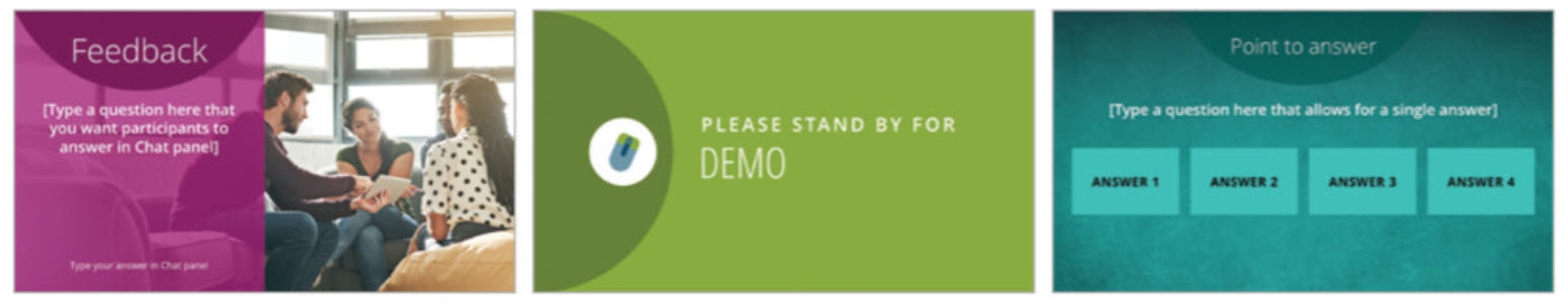 The trick? Create frequent opportunities for virtual audience interaction by adopting interactive placeholder slides. Slides that visually show your audience what they need to know or do at any given moment. They’ll act as a visual pause that signals a break for Q&A, a quick poll, discussion in a chat, a virtual whiteboard brainstorming session, or even breakout rooms for small group exercises. It breaks up your constant monologue by guaranteeing valuable feedback opportunities that will help you discover and directly address your audience’s needs in the moment. These are the lifeline for virtual meetings.